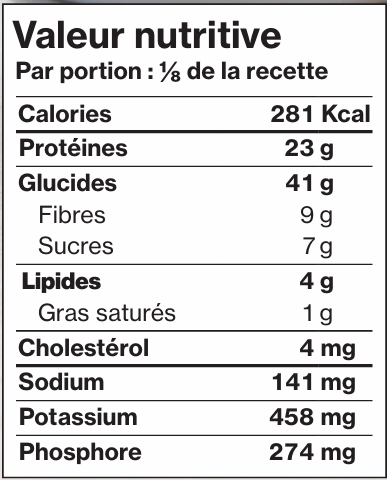 | 2 ¼ tasses de lentilles vertes sèches (Ou 6 tasses de lentilles en conserve, rincées et égouttées. Vous pouvez sauter l’étape 1. Choisissez le produit ayant la plus faible teneur en sodium.) | |